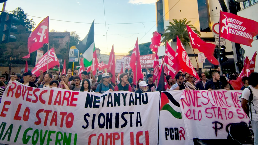 El Partito Comunista Rivoluzionario (PCR) estuvo presente en 40 manifestaciones, a menudo frente a escuelas y lugares de trabajo desde primera hora de la mañana para promover la huelga, vender nuestro periódico, Rivoluzione, y conocer a personas interesadas en afiliarse a nuestro partido. En Roma y Milán, los compañeros del PCR trajeron a sus colegas, especialmente profesores, trabajadores sanitarios y trabajadores de logística, a nuestras secciones de la marcha.