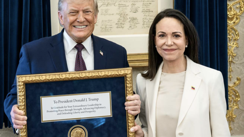 Que MCM recibiera el Premio Nobel de la Paz, considerando su constante agitación a favor de que EEUU invadiera y atacara militarmente su propio país, es ya bastante escandaloso – aunque hay que señalar que está en buena compañía, bastantes criminales de guerra tienen la dichosa medalla también. Pero que ella pensara que entregándosela a Trump se ganaría su favor es bochornoso.
