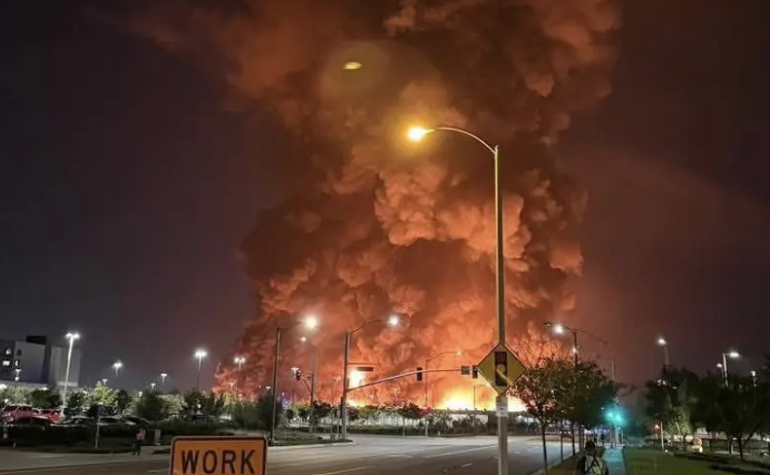 El incendio se inició justo después de medianoche de la madrugada del 7 de abril, cuando todo el equipo del turno de noche se fue a descansar. En 45 minutos, la estructura —lo suficientemente grande como para albergar 21 campos de fútbol entre sus paredes— quedó envuelta en llamas. Se necesitaron 175 bomberos para extinguir el infierno, que consumió por completo el edificio y todo su inventario, valorado en un total de 650 millones de dólares. Ninguno de sus compañeros de trabajo resultó herido.